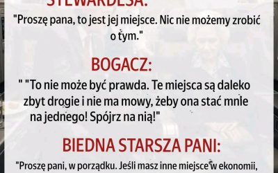 Naśmiewał się ze starszej kobiety w klasie biznesowej, ale potem pilot powiedział coś, co doprowadziło wszystkich do płaczu.