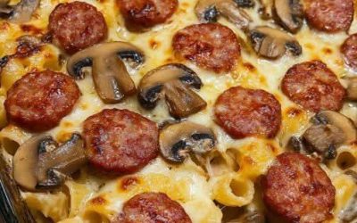 To danie z piekarnika z kiełbasą, pieczarkami i makaronem to idealny comfort food. Delikatny makaron i pikantna włoska kiełbasa połączone…