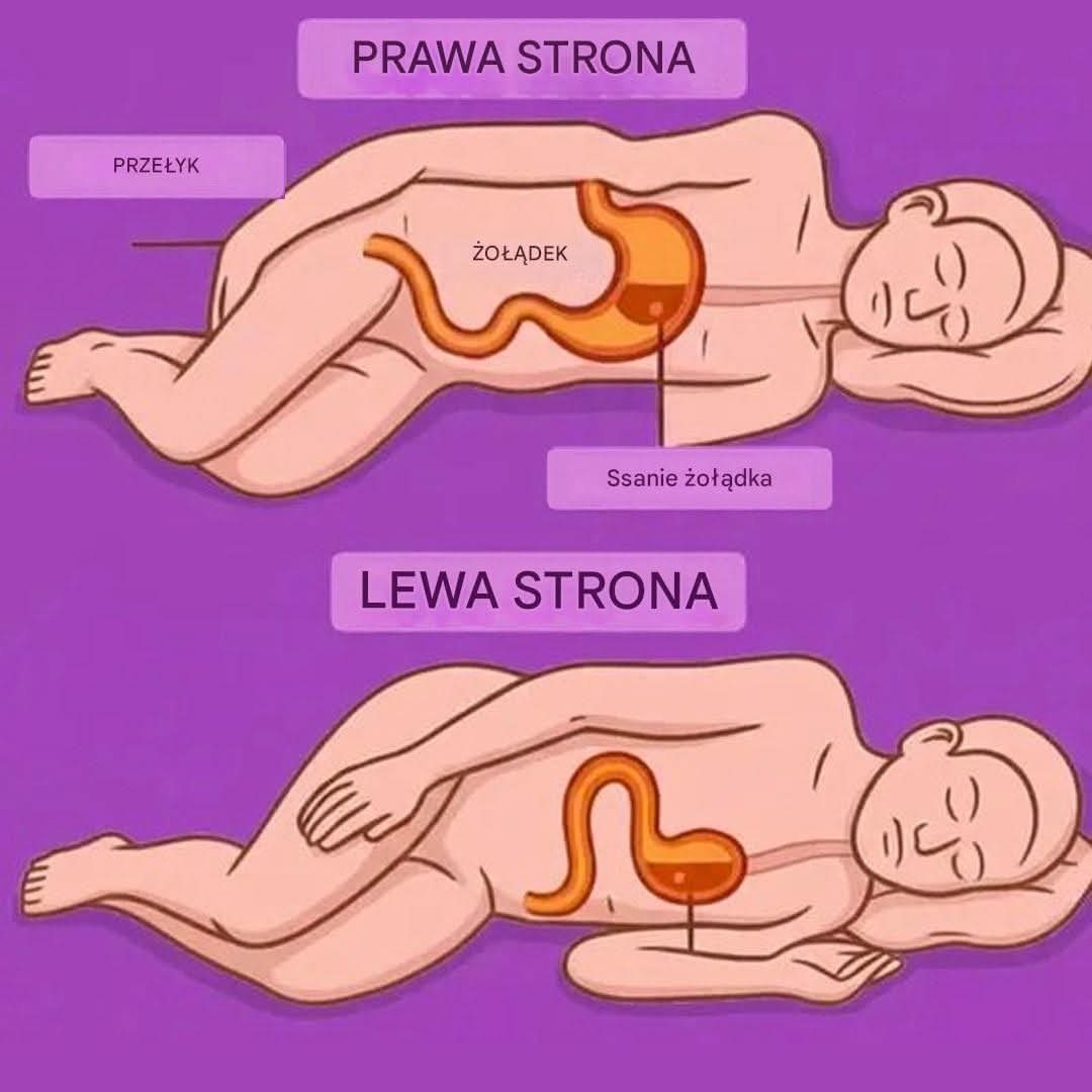 Kiedy leżysz na prawym boku, naturalne ułożenie narządów odgrywa rolę. Żołądek i przełyk nie są ułożone w ten sam sposób, jak podczas spania na lewym boku.