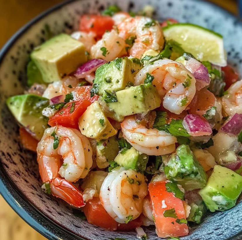 Sałatka z krewetkami w sosie limonkowym i awokado