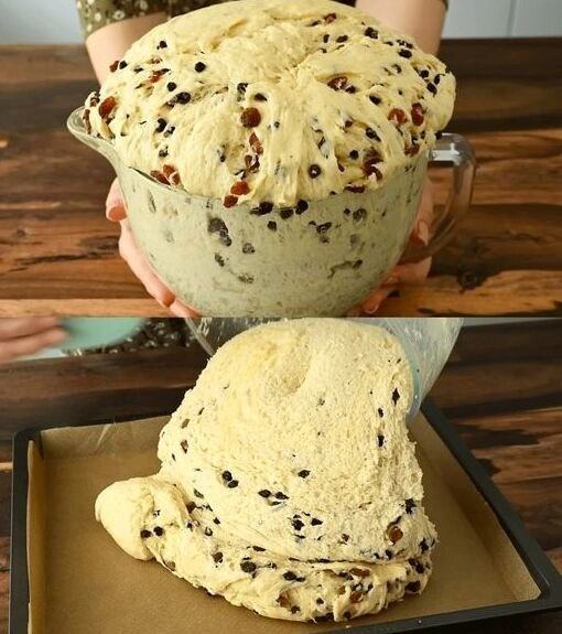 Następnie namocz rodzynki w rumie. Pozostaw ciasto drożdżowe do wyrośnięcia na około 1 godzinę w ciepłym miejscu.